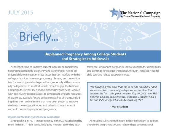 Power to Decide (formerly The National Campaign to Prevent Teen and Unplanned Pregnancy). (2012). Community Spotlight: CASE STUDIES Implementing a New Sexual Health Education Law in North Carolina. Washington, DC: Author.